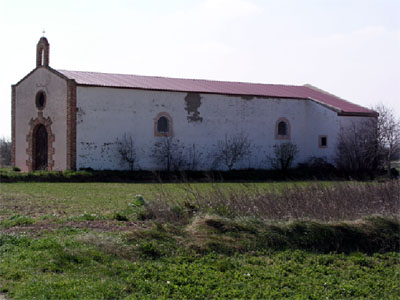Se levanta exenta al final del camino, rodeada de terrenos de labor, cerca del cauce del Ebro.