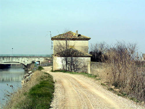 Las quince almenaras del Canal Imperial de Aragón, construidas en los años 80 del s. XVIII, presentan una estructura fija de dos cuerpos adosados, uno de una planta y otro de dos, ambos cubiertos a cuatro aguas y con paredes de tapial encaladas que se apoyan en una estructura de sillar que alberga las compuertas, las cuales se suelen cubrir con arcos adintelados. Es característico también el pequeño alero bajo el tejado.