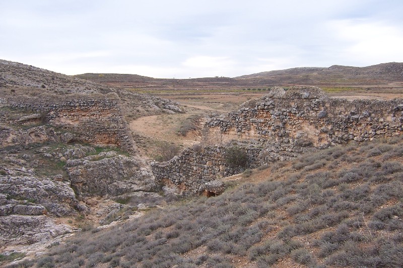 Los restos de los muros, de unos 10 metros de altura y más de 2 de grosor, están realizados en un aparejo de mampostería muy irregular, trabada con mortero de cal.