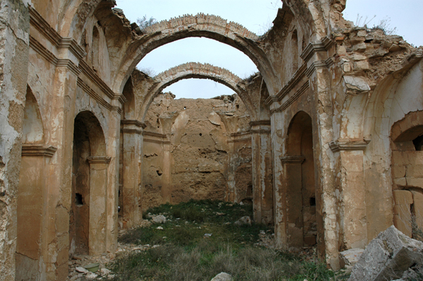 Es un edificio de una nave, con capillas laterales muy poco profundas y cabecera poligonal orientada al noreste (50º). Las cubiertas se encuentran totalmente desaparecidas. La nave estaba dividida en tres tramos por fajones de medio punto de ladrillo y mampostería, que apeaban en pilastras toscanas unidas entre sí por un entablamento que presentaba dos hileras de tres listeles. Entre las pilastras se abre la embocadura de las capillas en arco rebajado; estas tienen planta rectangular de escasa profundidad y se cubren con bóveda rebajada. La nave se encuentra iluminada por tres ventanas en arco rebajado por cada uno de los lados, ubicadas sobre el mencionado entablamento.