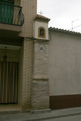 Se eleva sobre un pequeño basamento cuadrado de piedra, siendo el resto de ladrillo unido con abundante mortero. Sobre ella el pilón se desarrolla en tres cuerpos. El primero, a modo de de basa de gran desarrollo en altura, es ligeramente más ancho que la parte superior. Como elemento de separación de la misma tiene una imposta moldurada de piedra arenisca. El fuste es liso y está rematado por una doble imposta moldurada que lo separa de la capilla propiamente dicha; en su parte superior muestra una baldosa de cerámica con la imagen del santo. En la parte superior, encalada, se abre la hornacina, en un sencillo arco de medio punto.
