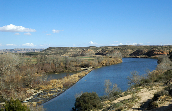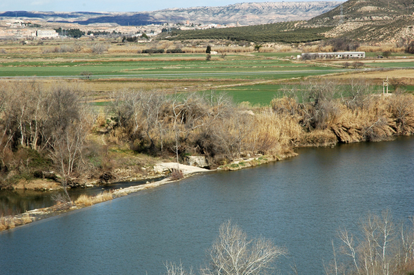 Comienza con un puerto de 12 m de anchura, actualmente cerrado con un bloque de hormigón, como si de una continuación del azud se tratara. Los puertos eran aperturas en el dique que permitían el tráfico fluvial. Se construyen levantando un muro de contención en la orilla a base de sillares y otro paralelo a éste a la distancia indicada. Esta apertura, para evitar pérdida de agua, solía cerrarse con las llamadas entibas