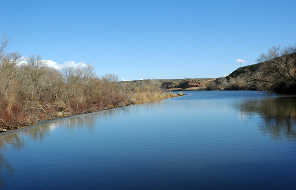 Tiene una longitud inferior a 1 km. Esta dividido dos tramos: el primero de unos 600 a 700 m, arranca de la orilla derecha, describiendo una diagonal prácticamente recta, sin las habituales ondulaciones; el segundo disminuye el ángulo de la diagonal, manteniéndose próximo a la orilla izquierda en los 100-150 m del recorrido final hasta llegar al colector donde se encuentra la caja de norias.