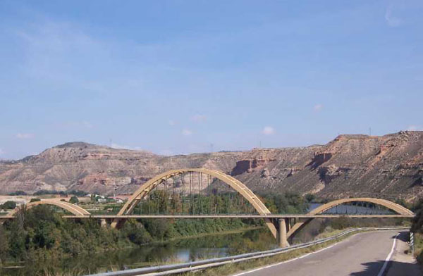 Los arcos articulados se emplearon casi desde los inicios del uso del hormigón en España a principios del siglo XX. Una manera similar de estructurar el tablero en la parte baja de los arcos puede constatarse en el puente sobre el Narcea construido por el ingeniero Sánchez del Río en 1930.