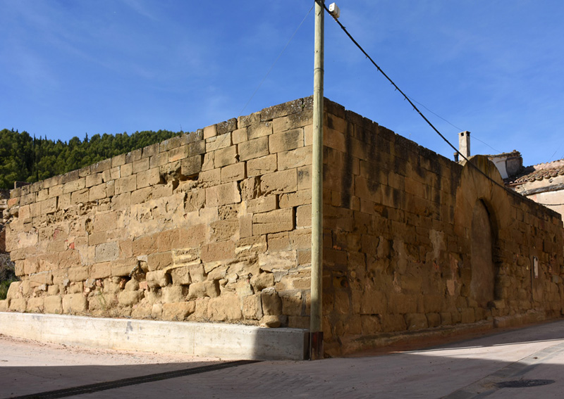 Destaca también el paramento del lado sur, realizado al igual que la fachada en buena piedra sillar, mientras que los restantes lienzos y restos conservados en los lados oeste y norte presentan aparejo de peor calidad con abundantes reparaciones.