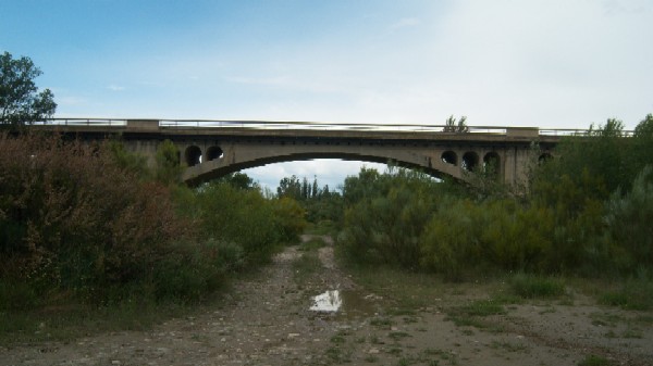 Nos encontramos con un puente, que presenta tres grandes arcos rebajados de amplísima luz, que salva el río Gállego. Cada arco se ayuda de tres arquillos a cada lado que decrecen en altura conforme se acercan al centro del arco. Cada arco descansa en unos grandes tajamares semicirculares con una coronación semicónica.
