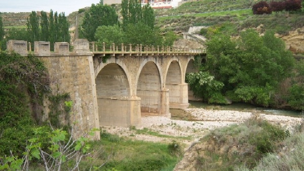 Sobre este puente, que salva el río Alcanadre, discurre la A-1217. Está compuesto por cinco arcos de medio punto de piedra, al igual que los estribos. Los arcos descansan en unos tajamares semicirculares con una coronación semicónica. Por encima se levantan unos quitamiedos que delimitan los extremos de la carretera.