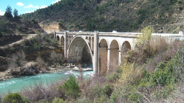 Fue construido para sustituir al antiguo puente, situado aguas arriba, después de que fuera arrasado por una riada en 1942.