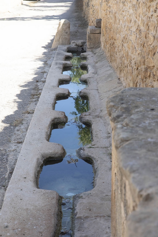 El abrevadero es una estructura rectangular picada en el sustrato de arenisca del terreno y situada a ras de suelo. Está compuesto por seis pilas rectangulares comunicadas entre sí a través de aberturas situadas en sus lados cortos.