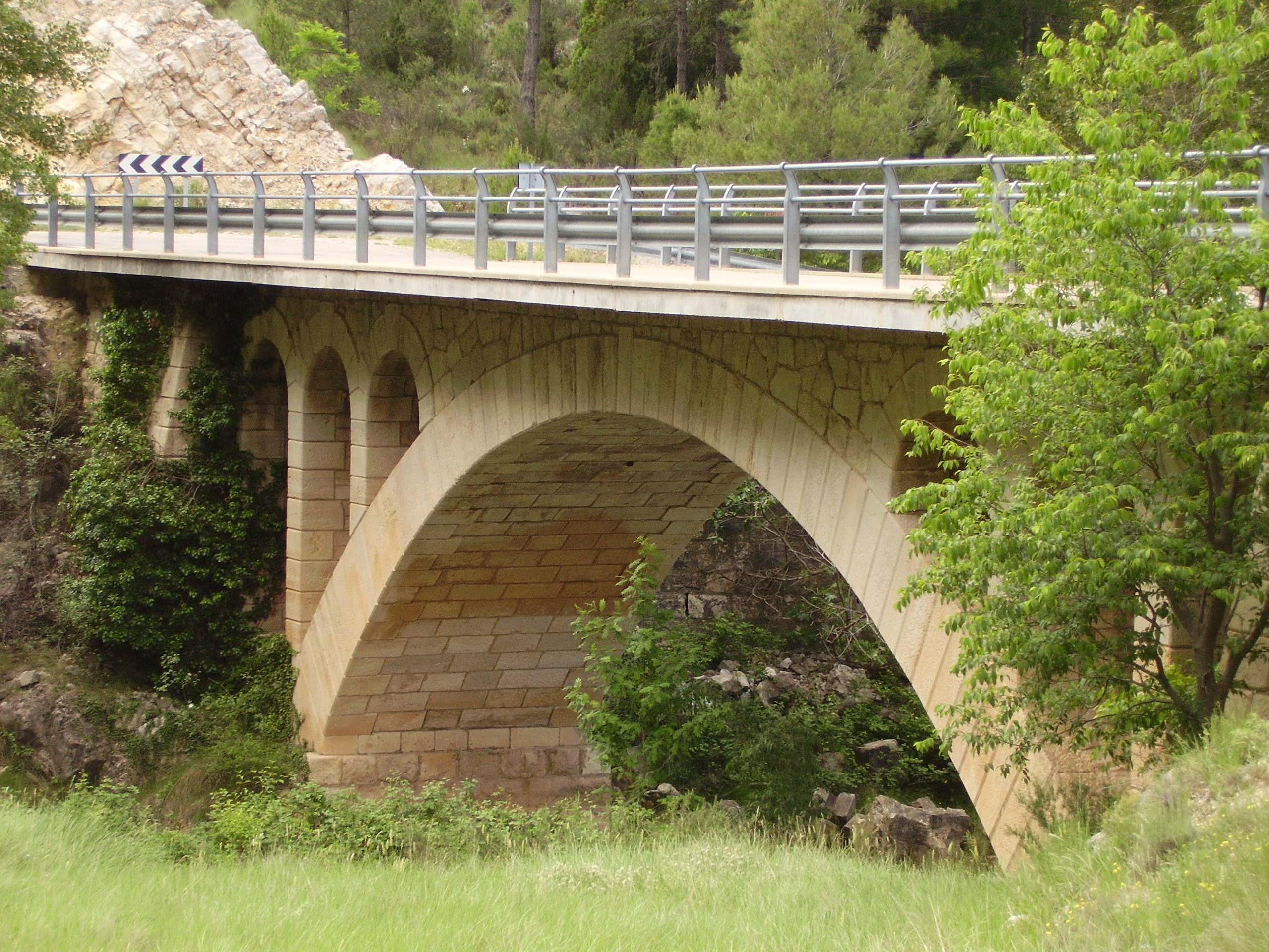 Puente carretero sobre el río Guadaloe en el término de Villarluengo, presenta un solo ojo en arco rebajado con los muretes del puente horadados por tres arquillos de medio punto, que ayudan a aliviar las fuerzas y estilizan el puente. El arco apoya directamente sobre los estribos laterales, está construido en piedra, con buen trabajo de cantería, tiene la calzada asfaltada y un quitamiedos metálico.