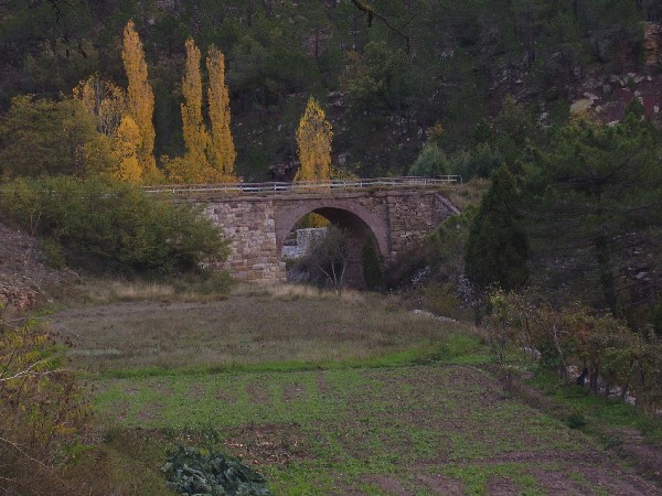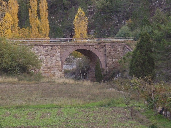 Puente carretero, realizado en piedra, en arco de medio punto con dovelas bien labradas, que apoya sobre una línea de imposta en los muros laterales, de sillería irregular.