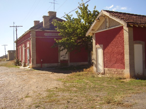 Conjunto de edificios de explotación ferroviaria de la Compañía Central de Aragón en la línea Zaragoza-Valencia, compuesto por edificio de viajeros (con la oficina para el jefe de estación), aseos y edificio del guardagujas (con pozo).