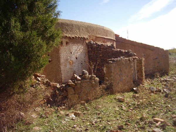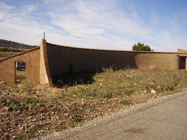 En el lado cóncavo tiene adosada alguna construcción de planta rectangular y tejado a una sola vertiente en teja árabe, realizada en piedra, que serían utilizadas como almacenes de maquinaria, y en el convexo una puerta de acceso a lo que originariamente debió ser un retrete, ya que se encuentra alicatado en blanco y es de pequeñas dimensiones.