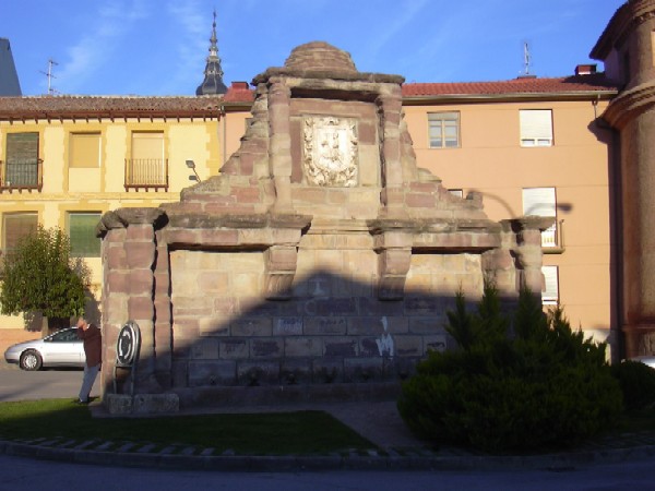 Este monumento se compone de un primer cuerpo rectangular inferior, construido en piedra sillar de buena calidad, y decorado con pilastras verticales adosadas en los extremos y un arquitrabe horizontal apoyada en dos ménsulas. Dicha cornisa se interrumpe entre las ménsulas, configurando una cierta estructura tripartita en dicho cuerpo. Sobre él y más concretamente sobre el espacio existente entre las ménsulas, encontramos el segundo cuerpo, también enmarcado por pilastras y una cornisa, y en cuyo interior se sitúa el escudo de la ciudad, tallado en una placa de alabastro.