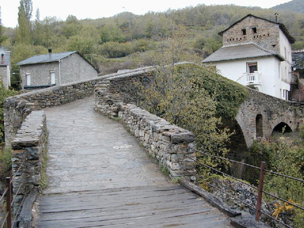El tablero es de dos tramos que ascienden en rampa hasta el punto central; es de los llamados en lomo de asno.