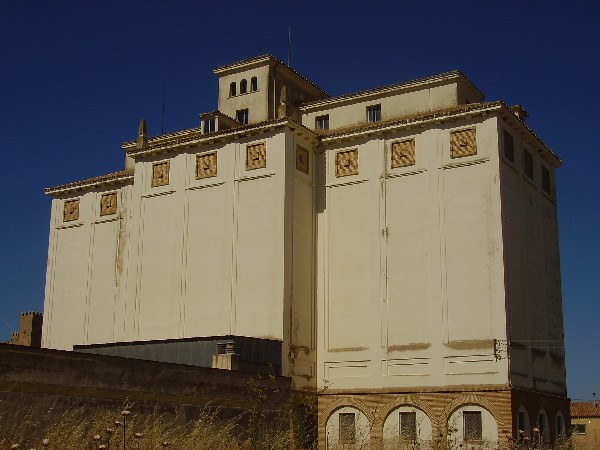 Es muy similar al silo de la estación en Ejea de los Caballeros. Ambos difieren ligeramente de la tipología convencional de los silos construidos en la posguerra por el Servicio Nacional del Trigo.