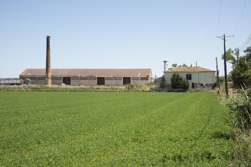 Chimenea octogonal que se levanta en medio del campo, ya que del resto de la fábrica de papel no se conserva nada. Su base es poligonal, al igual que el resto, que se faceta y se estrecha según se alza. Está elaborada de ladrillo caravista tanto la chimenea como la base de la misma.