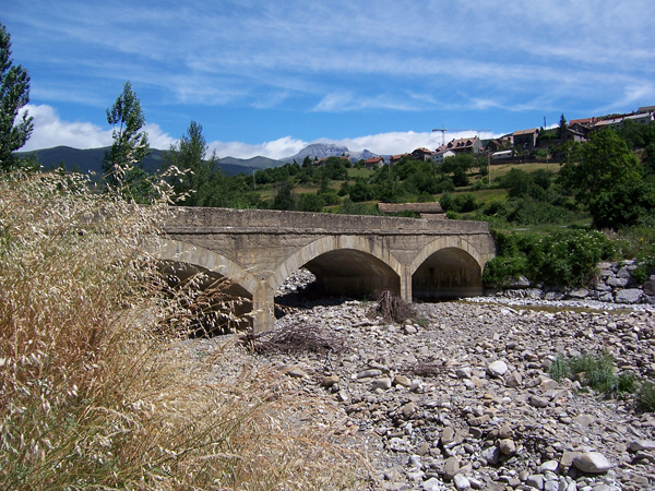 Puente de hormigón armado de tres arcos, con forma levemente parabólica y asiento recto por medio de pilares de paralelepípedo en el lecho del río, de testero recto en su parte superior, con el refuerzo de dos pretiles a ambos lados del puente. De factura poco elaborada, en el cuerpo central del mismo se aprecian claramente los maderos empleados como molde de encofrado del hormigón.