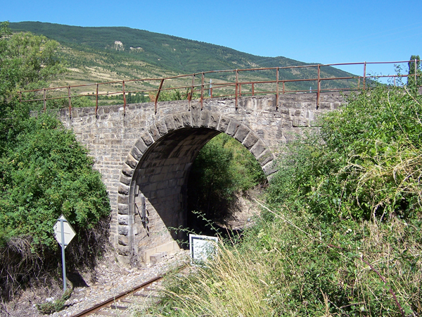 Paso elevado de la línea Jaca-Canfranc. Se fecha en torno a 1916. Actualmente se sigue utilizando.