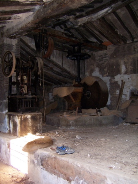 - La balsa y el ruello para deshacer las olivas, accionado por energía eléctrica. Conserva parte de la maquinaria complementaria.