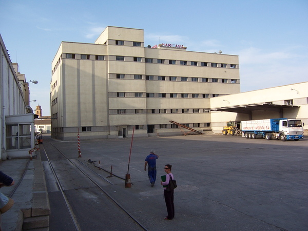Junto a la puerta de acceso a la fábrica se encuentra este edificio de planta rectangular conformado por tres grandes cuerpos de diferentes alturas y tratamiento, con cierre de cubierta plana.