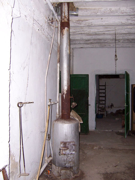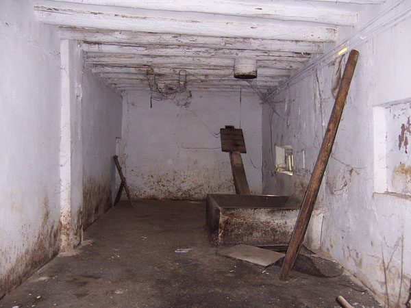 Los muros interiores se encuentran igualmente enfoscados y los techos presentan robustas vigas de madera que proporcionan la cubrición de este primer piso y el suelo al segundo.