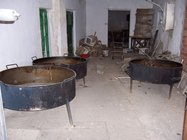 Al interior, la almazara se subdivide en cuatro espacios. La planta rectangular se divide longitudinalmente y los dos espacios que se forman se subdividen en otros dos. En primer lugar se accede a un espacio destinado principalmente al pesaje de la oliva, para lo que se usaba la balanza de mayores dimensiones que se sitúa a mano izquierda. A la derecha se sitúan los almacenes de la oliva y al fondo la almazara o zona de producción. En ella se encuentran las pilas, situadas a mano izquierda, las muelas o ruellos a mano derecha, la caldera para calentar el agua y facilitar el proceso y, finalmente, la prensa hidráulica.