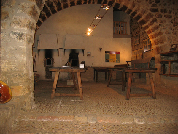 El interior consta de una única dependencia en la que se distribuyen los diferentes utensilios que se empleaban para la elaboración de los alimentos, además de las placas explicativas correspondientes al museo. Frente al vano de acceso se dispone el muro donde se sitúan las portezuelas que se abren a las cámaras de introducción de combustible y de cocción de los alimentos.