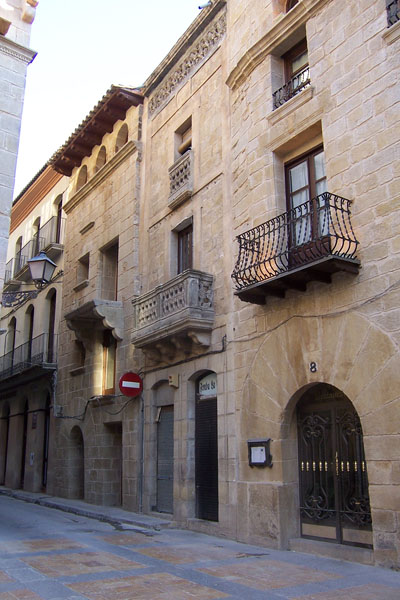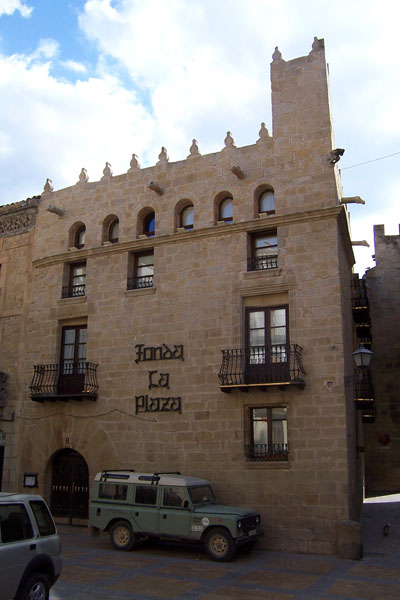 Se trata de un palacio de origen medieval, construido en piedra y de planta cuadrada, rematado con una torre de planta también cuadrada, que se ubica en un lateral. La fachada principal del inmueble da a la Plaza de la Constitución, pero la parte posterior del edificio linda con el río, junto al portal de entrada de la antigua localidad. El edificio consta de dos módulos. El primero es de tres plantas y se compone de dos vanos inferiores de acceso y otros dos vanos de iluminación. Los de acceso, pequeños y rectangulares, se rematan con arcos carpaneles rebajados. El vano izquierdo tiene una inscripción: Fonda Blanc: CASA DE VIAJEROS DE ENRIQUE BLANC. En cuanto a los vanos de iluminación, estos se distribuyen en las dos plantas, presentando forma rectangular y un balconcillo de piedra labrada. El otro módulo, más amplio, dispone en su fachada principal el vano de acceso, un arco de medio punto adovelado. Junto a éste, otro vano de iluminación de formato rectangular presenta un balconcillo de forja. El siguiente piso tiene dos vanos de iluminación más amplios con balcones de forja y el tercero muestra tres vanos de iluminación similares a los del piso inferior. Entre estos vanos se enmarca el nombre de la posada; grandes letras de forja que se sitúan en la parte central de la fachada. La cuarta planta se separa visualmente de las inferiores por una cornisa. Consta de seis pequeñas ventanas de medio punto. Sobre éstas, y continuando en las fachadas lateral y posterior, una serie gárgolas se encargan de evacuar el agua de lluvia. El edificio se remata con los mismos pináculos decorativos que aparecen en la torre. La fachada lateral consta de similares vanos de iluminación con balconcillos de forja dispuestos de manera irregular y en la fachada posterior encontramos una amplia balconera de carpintería realizada en tres alturas. La inferior se realiza en carpintería y cristalería, mientras que las siguientes se conforman por balcones de madera, más sencillos, sostenidos por columnas de este mismo material. El edificio, actualmente en propiedad de la familia Blanc, fue también propiedad de la familia de Figuera, fundadora de la Fábrica Fort de Valderrobres.