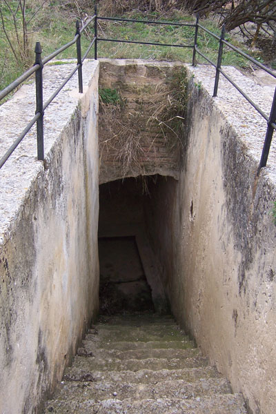 Fuente subterránea con depósito cubierto por el terreno. Probablemente el receptáculo de agua sea de planta rectangular irregular y esté cubierto por bóveda de rejola.