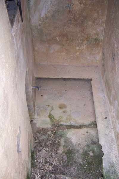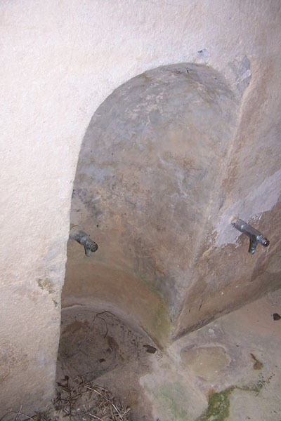 Por un tramo de escaleras, que parte del nivel del suelo, y que está construido entre dos gruesos muros, se desciende a una pequeña estancia alargada. En uno de los lados largos se encuentra el grifo de salida de agua, protegido por una pequeña hornacina. El desagüe se efectúa por un canalillo central con continuación en tubería bajo tierra hasta salir al exterior. Al depósito se accede desde un pequeño vano cerrado con portezuela, que se encuentra en la parte superior del muro.