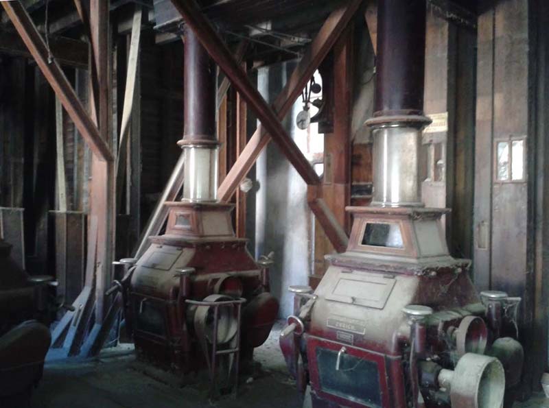 El piso inferior se destina a la ubicación de los motores, en primer lugar de gasoil y posteriormente eléctricos. El primer piso alberga los molinos de la harinera y los pisos superiores los diferentes cernedores y limpias para el grano.