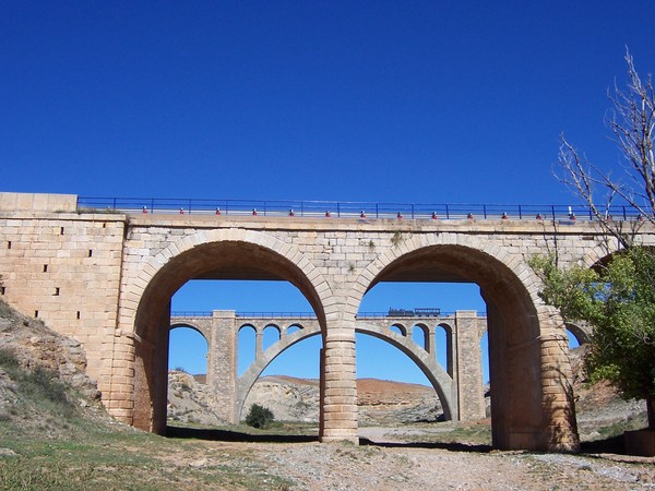 El primer puente, realizado en piedra labrada a caravista, posee tres arcadas sobre pilas curvas con sillar almohadillado. El murete esta desprovisto de cualquier elemento decorativo a excepción del uso de sillares almohadillados para remarcar las pilas, los estribos y los perfiles arquitectónicos, al igual que la sencilla balaustrada sobre el tablero superior, seguramente posterior a la fábrica del puente original.