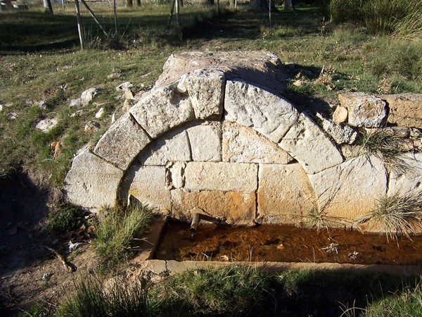 El caño, situado en el citado murete, vierte a una larga pila rectangular de construcción reciente. Abierta a ras de suelo, está delimitada por piezas de piedra.