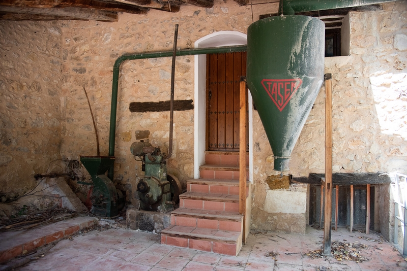 En el piso superior se llevaban a cabo los procesos de tamizado y clasificación de la harina producida, conservándose la maquinaria instalada al efecto. A la altura de este piso hay un porche adintelado, sustentado por pilares, en cuyo interior se instaló en época relativamente reciente un molino de gasoil.