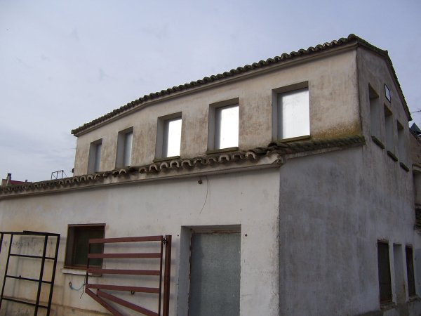 Adosada y formando parte del edificio aparece una nave con las cuadras que se cubre con tejado de una vertiente. El muro se abre con un vano para la puerta de acceso y otro de formato rectangular, adintelado y dispuesto horizontalmente que, al igual que los vanos de la primera planta de la fachada principal, se cierra con reja metálica en forma de retícula.