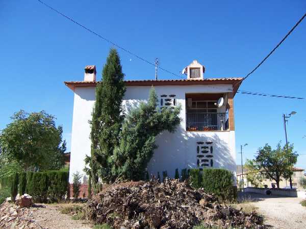 Elementos destacables son las ventanas de la primera planta, cerradas con celosía de obra, y, en la segunda, una terraza en esquina sobre la puerta principal.
