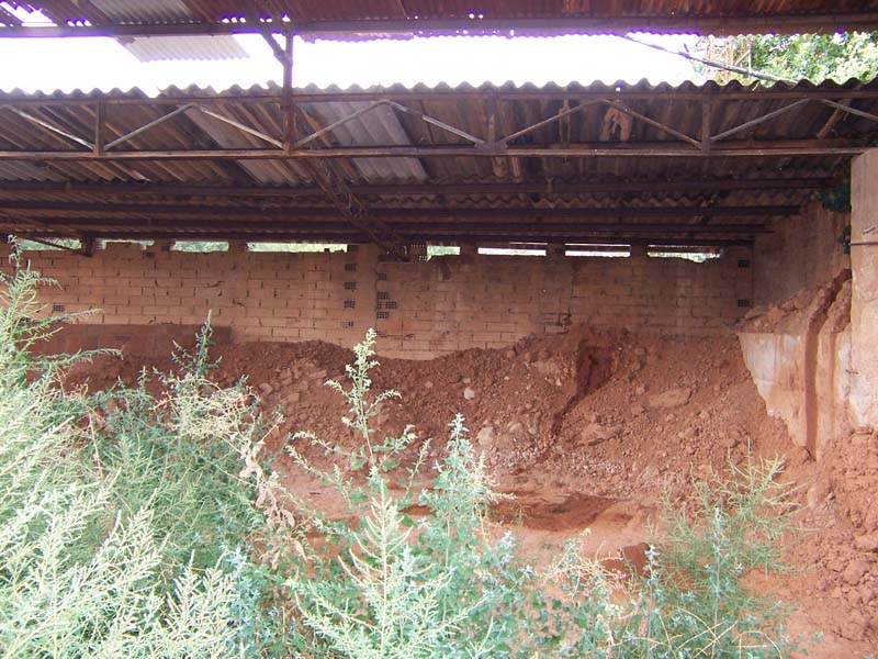 Básicamente, se trata de una estructura de planta horizontal formada por un paramento construido en ladrillo que se cierra en una vertiente de uralita que se sostiene por un entramado de vigas de hierro. Respecto a su configuración espacial, domina el sentido abierto, sobre todo, en lo que concierne a dos de sus cuatro fachadas, puesto que la tercera forma parte de un edificio anexo. Dicho interior alberga la arcilla, la materia prima necesaria para la elaboración de las piezas cerámicas.