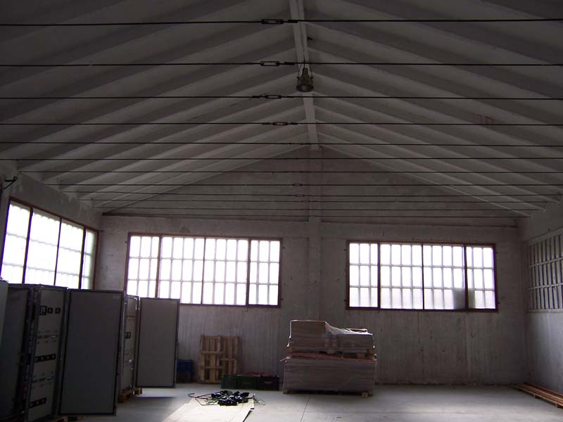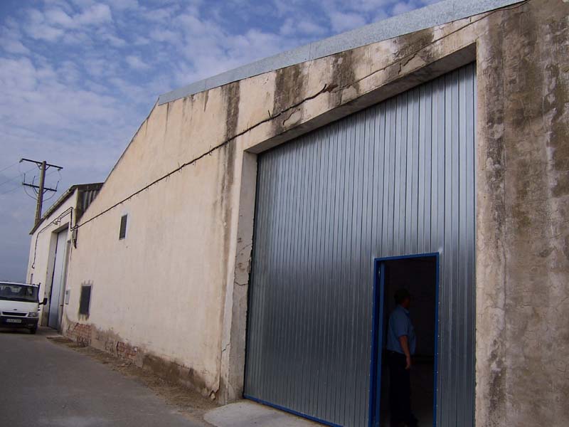 Se trata de un conjunto de tres naves de similares características constructivas: son edificios de planta rectangular que se cubren a doble vertiente mediante estructuras de tirantes de hierro y cerchas metálicas. En un caso concreto, una de las naves construidas más recientemente desde el punto de vista cronológico, ofrece vigas de hormigón. El espacio interior presenta una tendencia a la uniformidad y homogeneidad, que sólo es alterada en el espacio reservado para la oficina, cuyo espacio se separa del conjunto por medio de un tabique, en el que se abre una puerta en el flanco izquierdo de la pared levantada. Asimismo, este habitáculo, contrariamente a lo que sucede en la mayor parte del inmueble, es de reducidas dimensiones: presenta una planta cuadrada, a lo que se une la circunstancia de un techo bajo. En el paramento izquierdo se abre la única ventana que posee; poseía una puerta interna de acceso, al fondo de la estancia, la cual ha sido cegada con ladrillo y cemento. El resto de los muros ha sido enfoscado y encalado. El suelo, por su parte, se constituye por baldosas de terrazo. El conjunto de las naves, como se ha dicho, responde a un planteamiento de amplios espacios, separados entre sí por altos tabiques que definen las naves. Conviene apuntar que las naves más recientes, que son también de menor altura, ofrece una articulación del alzado de los muros en función de la existencia de varias pilastras que configuran una división en tres tramos regulares los muros laterales, en los cuales se abren sendos vanos que siguen la tipología fabril, los cuales dan al interior del recinto industrial. Los suelos han sido echados de cemento. En cuanto a las fachadas exteriores, cabe decir que han sido levantadas en ladrillo, si bien sus superficies han sido posteriormente enfoscadas y encaladas. La articulación mural es sumamente sencilla, de manera que debemos distinguir entre las fachadas cortas, situadas perpendicularmente a la carretera, en donde apreciamos la existencia de una puerta de acceso, de pequeño tamaño, a la izquierda del paramento, que se complementa con otra amplia, pensada para los vehículos de transporte; la segunda de las naves, tendría un pequeño vano, abierto en el centro del muro, más una nueva puerta para los vehículos, a la derecha del paramento. Por último, la tercera de las naves, de más reciente edificación, contaría con dos vanos de formato rectangular, que presenta la tipología fabril característica. Respecto a las fachadas traseras, de mayor superficie que las anteriores, ofrecen tres vanos, de perfil cuadrangular y dispuestos equidistantes entre sí. Otra de las fachadas muestra otros tres vanos: dos de ellos de idénticas características a los mencionados, mientras que el tercero, abierto entre estos dos, es de muy reducidas dimensiones. La tercera de estas fachadas traseras, de planta irregular, posee cuatro vanos cuadrados equidistantes entre sí. Finalmente, decir que la cubierta es de uralita.