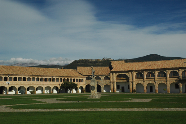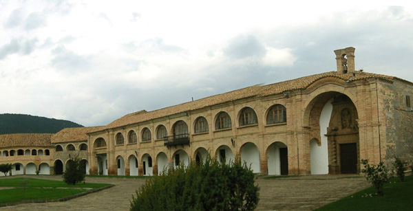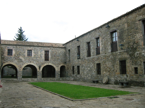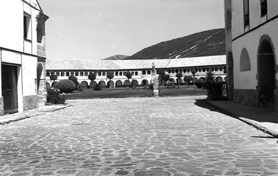 La plaza central, de enormes dimensiones, es de planta pentagonal y en torno a ella se distribuyen las principales dependencias. Cada lado del pentágono está dividido en dos planta, las crujías inferiores abren al patio mediante arquerías de medio punto; el piso superior abre con grandes ventanas de medio punto.