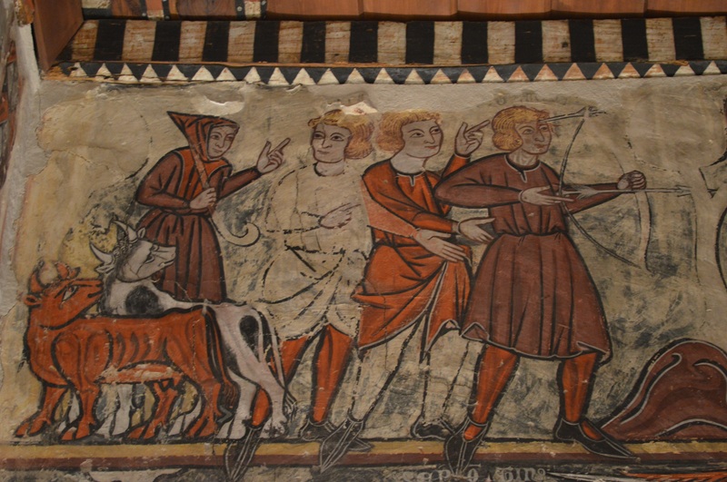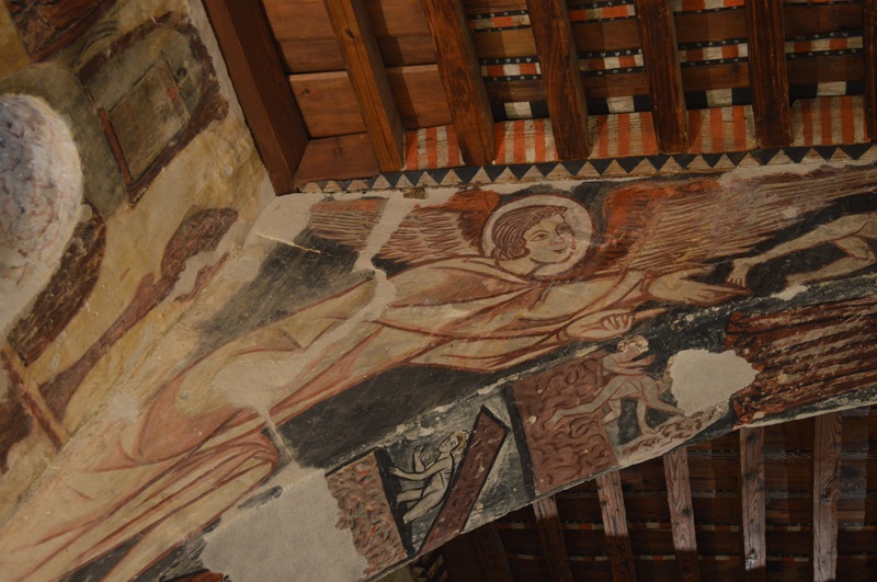 Construcción original del edificio, incluida la armadura de madera, en la segunda mitad del siglo XIII. Decoración pictórica de estilo francogótico datable a fines del XIII, principios del XIV.