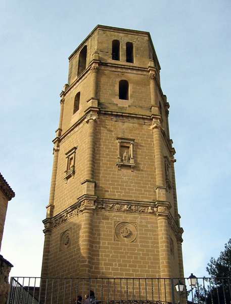 Es una torre exenta, sin ninguna relación estilística con el resto del conjunto. Está realizada en piedra sillar. Tiene planta hexagonal y está compuesta por basamento y cuatro cuerpos, en los que se se suceden los tres órdenes clásicos.