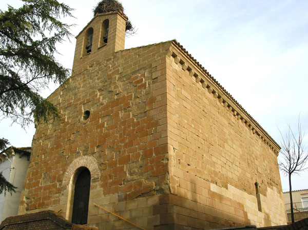 Iglesia románica del siglo XIII cuyo principal interés se centra en ser uno de los tres únicos ejemplos de construcción templaria que se conserva en Huesca, junto con las de Cofita, con la que guarda grandes similitudes, y el castillo de Monzón.
