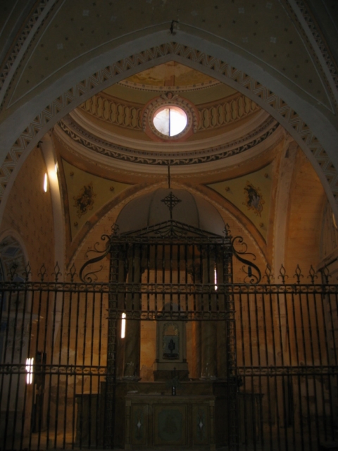 La capilla mayor se cubrió con cúpula semiesférica sobre pechinas al igual que la capilla lateral que abre a este espacio. El tramo central se cubrió con bóveda de crucería y el coro, elevado sobre un arco rebajado, se cubrió con bóveda de cañón apuntado.
