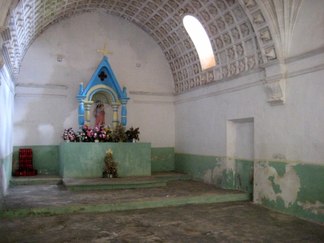Construcción gótico-renacentista de una sola nave con cinco tramos, cubiertos todos, a excepción del ábside, con bóveda de crucería de terceletes.Tiene un coro en alto.La cabecera, en forma de quilla, está cubierta con bóveda con decoración renacentista de casetones, cabezas de clavos y formas vegetales.