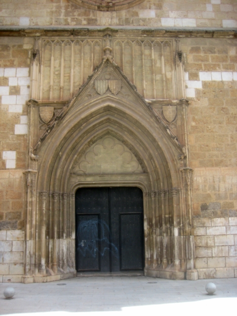 El acceso al interior se realiza mediante dos portadas abiertas en sus lados oeste y sur: ambas son apuntadas y constan de varias arquivoltas, destacando el hastial, de frontis triangular, dividido en dos cuerpos, abierto el superior mediante gran óculo con labor de tracería, y el inferior albergando la portada, entre contrafuertes; esta es apuntada, bajo gablete y un friso de arquillos apuntados muy esbeltos. La portada sur es muy parecida, aunque no presenta gablete, y el friso de arquillos ciegos es menos estilizado.