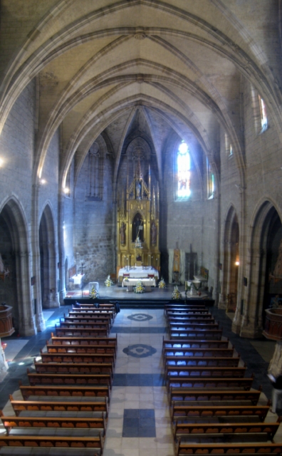 El templo consta de una sola nave dividida en cinco tramos, con capillas entre contrafuertes abiertas a la nave a través de arcos apuntados. Todo el espacio se cubre con bóvedas de crucería sencilla reforzada por arcos fajones también apuntados, mientras que la cabecera poligonal de cinco lados se cubre con crucería de seis nervios. Los nervios de las bóvedas apean en haces de columnillas que se adosan a los muros de la nave.