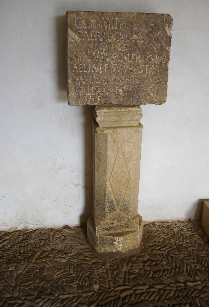Restos de columnas, capiteles y lápidas del conjunto monumental que aparecen en las esquinas del muro oeste de la ermita, son elementos arquitectónicos de gran envergadura que denotan la importancia del lugar. Asimismo, aparecen dos estelas funerarias iberas, una en el interior y otra en el exterior de la Ermita, ya que el conjunto al completo se incluye en el exterior del recinto fortificado de época ibérica.