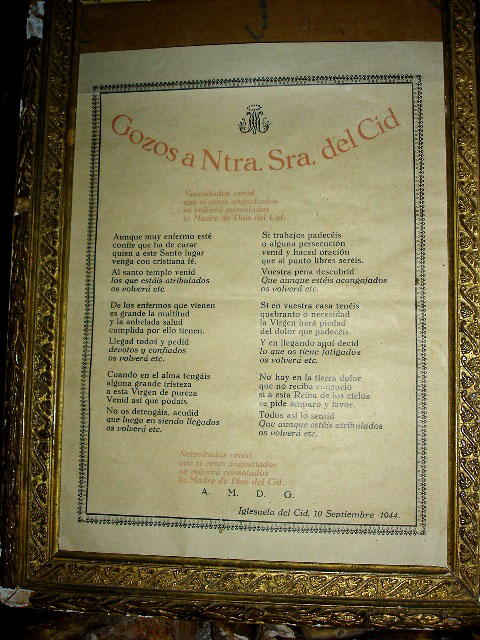 La imagen de la Virgen del Cid, datada en el siglo XII, se conserva en buen estado en la Iglesia parroquial.