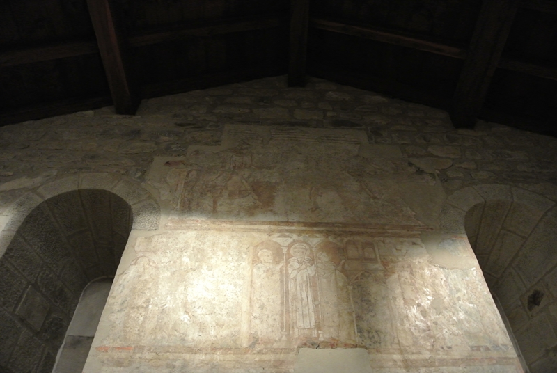 El interior de la capilla se caracteriza por la austeridad y la severidad, y por el marcado sentido longitudinal de su planta; la decoración se concentra en el testero recto de la cabecera en el que se han conservado restos de pinturas murales al fresco del período gótico lineal o francogótico, datadas en el siglo XIV.